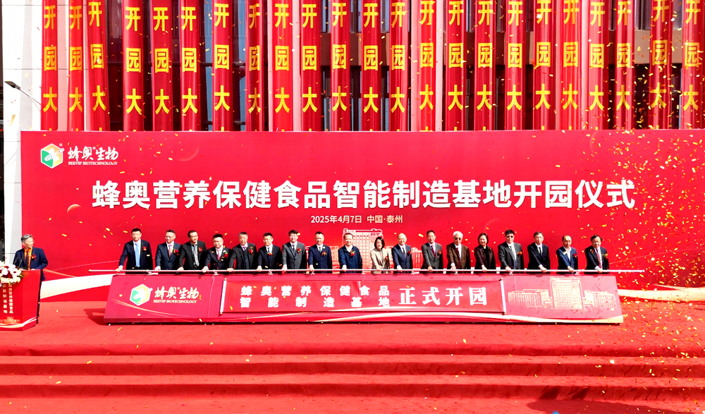 • “蜂奧營(yíng)養(yǎng)保健食品智能制造基地”盛大開(kāi)園! 4月7日,“蜂奧營(yíng)養(yǎng)保健食品智能制造基地”盛大開(kāi)園,江蘇蜂奧生物科技有限···